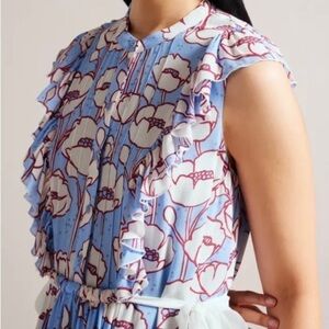 TED BAKER Tindraa Floral Frill Midi Dress Size 5 US 12 Ruffle Feminine Coquette