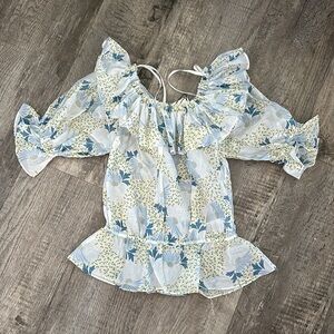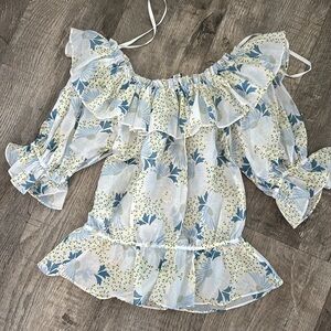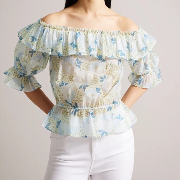 TED BAKER Trisia Floral-print off-the-shoulder woven top