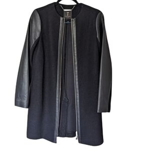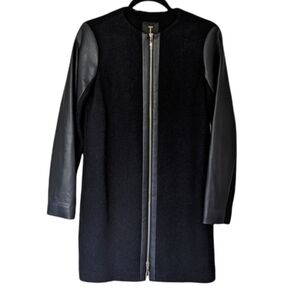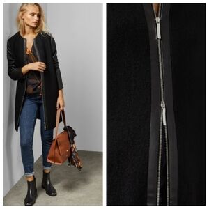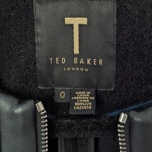 TED BAKER Vipper Black Faux Leather Sleeve Wool Zipper Coat Jacket