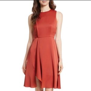 TED BAKER Winni Sleeveless Satin Dress in Brick Red