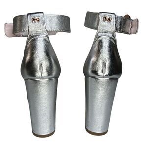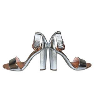 TED BAKER - Women Heel Sandals 'Secoa' Metallic Leather - Silver, 5.5 US, 36 EU
