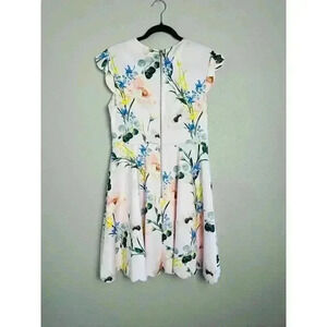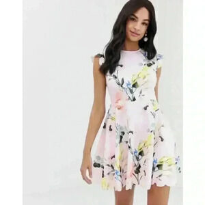 Beautiful TED BAKER Women’s Blush Pink Floral Karsali Scallop Skater Fit & Flare Dress Size 8