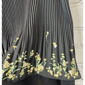 This Ted Baker skirt in size 4 (US Large) features a ditsy floral pattern in black, yellow, and green. It has a tiered pleated design with a chiffon fabric and a zip closure. The midi-length skirt has a flare style and is suitable for various occasions such as weddings, parties, or casual wear. It is machine washable and lined, making it a versatile and elegant addition to your wardrobe.