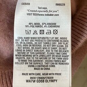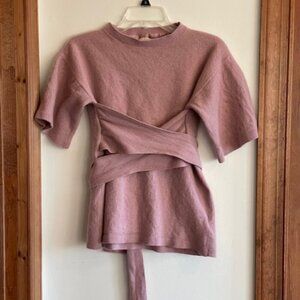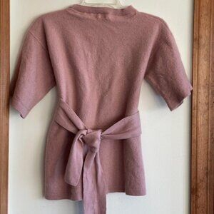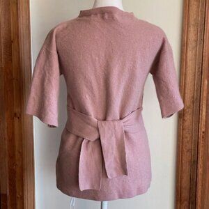 TED BAKER of LONDON Cashmere Blend Short Sleeve Tie Waist Pink Sweater L