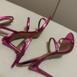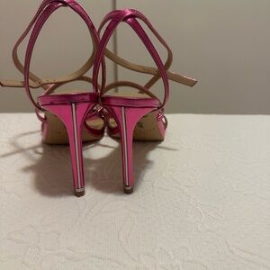 Step out in style with these elegant pink strappy heels. Perfect for any occasion, these shoes offer both comfort and sophistication.
