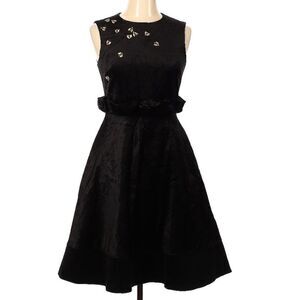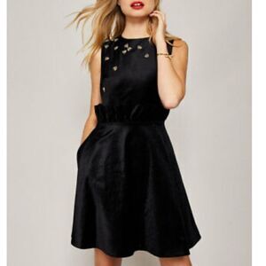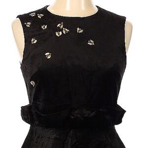 Gorgeous and luxurious heavy velvet with bee embellishments, ruffle waistline, exposed gold zipper and flounce skirt. Lined.