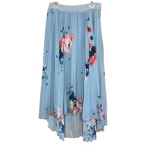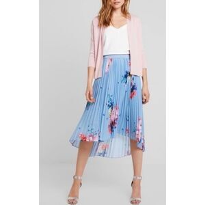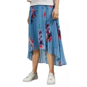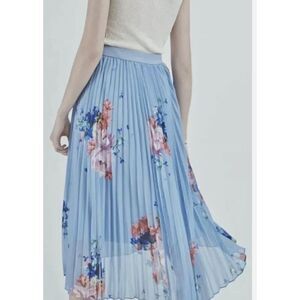 TED BAKER Harrpa Raspberry Ripple Floral Pleated Midi Skirt in Light Blue NWT S