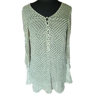 Ted Baker womens sheer shirt in size 1 which equals a small in US. Has green and white design on textured sheer fabric. Buttons at neckline and on cuffs of sleeves. Excellent preowned condition.