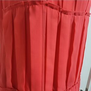 Stunning coral minidress with a pleated ruffle detail on the front and an exposed hook and eye closure on the back as well as a side zipper. Size 2
