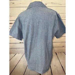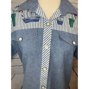 TEDDI Vintage Shirt SMALL Denim Chambray button front short sleeve Garden Flower