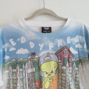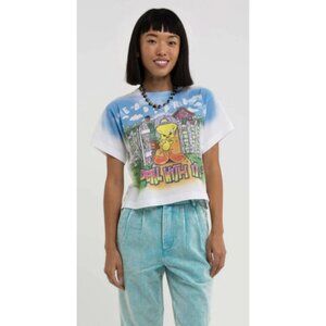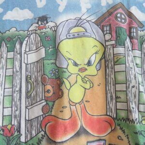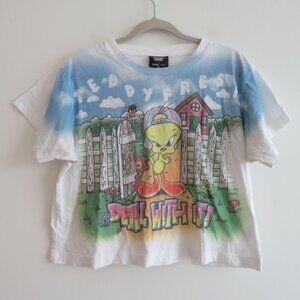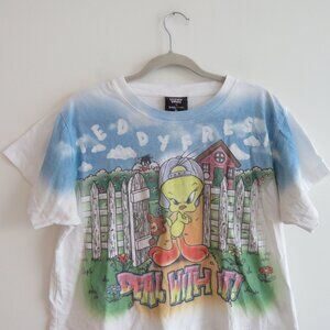 TEDDY FRESH X LOONEY TUNES Airbrushed Tweety Pie Cropped T Shirt 90s - Size XL