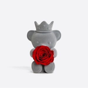 This little critter is the most adorable thing in the only roses.Delight your sweetie with a rose-bearing bear, who wears a crown on his head while holding a single Everlasting Rose bud in his arms.The bear arrives in an elegant black and gold box and is just the perfect-size token of love for your sweetie.