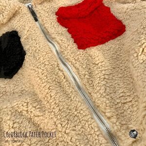 Colorblock Patch Pocket Teddy Sherpa Jacket