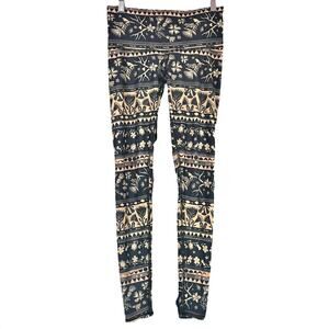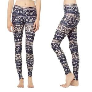 TEEKI Moon Flower Hot Pant Buttery Soft Leggings Navy Blue & Cream Size S