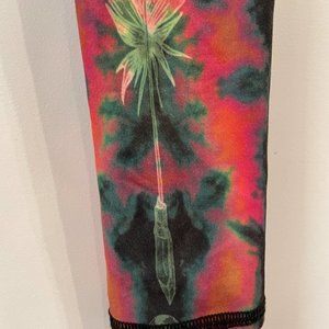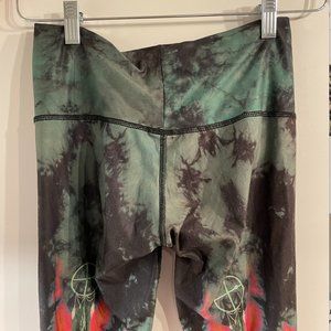 TEEKI Tie Dye Eagle Feather Green Hot Pants Yoga Patterned Leggings Size Small