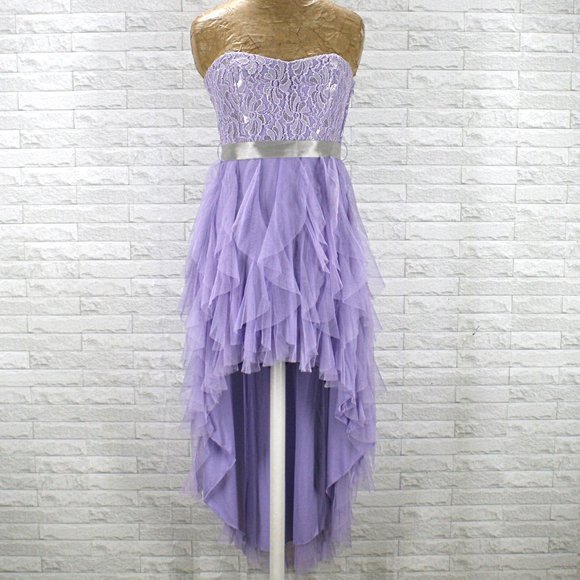 TEEZE ME Dress Homecoming Lilac Lavender Vertical Ruffle Prom High Low Juniors 3