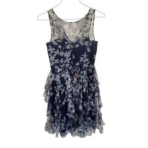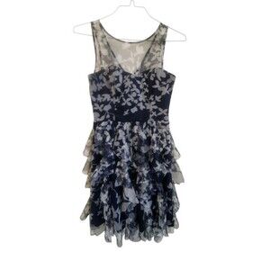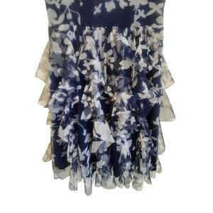 TEEZE ME Dress Women 7 Navy Sleeveless Formal Layered Ruffle Mesh Midi Party