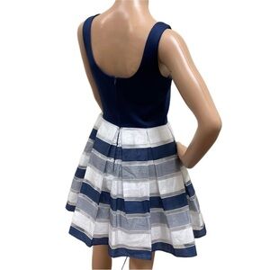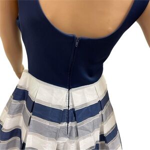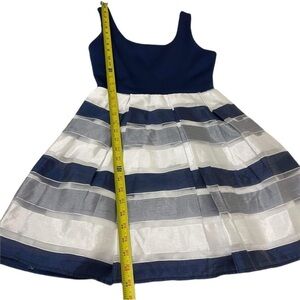 Blue and White Dress one piece zipper up the back top solid blue bottom white and blue striped