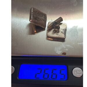Preowned Sterling Silver Square Cufflinks with engraved fingerprint detail.