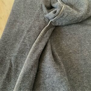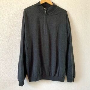 Excellent pre-owned condition. TEHAMA, dark gray, 100% combed cotton, mock turtleneck, partial zip front, lined (polyester/spandex) sweater.
