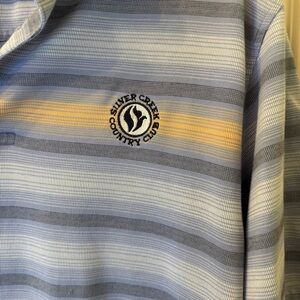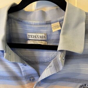 TEHAMA Blue Striped Polo Shirt Classic Style with Silver Creek Country Club Logo