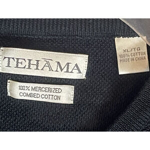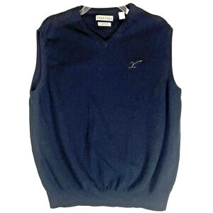 TEHAMA Clint Black V-Neck Golf Vest Mens Size Extra Large XL. 100% Mercerized cotton sweater with gray Jimmy V Foundation logo on chest. Clean pre-owned condition. Light wash wear, but nothing significant. Personalized with Jimmy V logo. Review photos carefully for measurements and all other details.