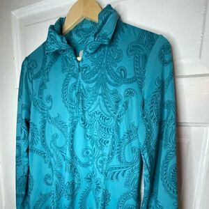 TEHAMA Long Sleeve Teal Paisley Athleisure Stretch Dress