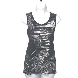Black & White tank top by Tek Gear. Attractive and flattering v-neck. Full back coverage. Scoop hemline