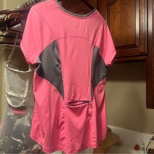 TEK GEAR DRYTEK~Pink + Grey V-Neck T-Shirt~100% Polyester Back Zip Pocket~ 1X