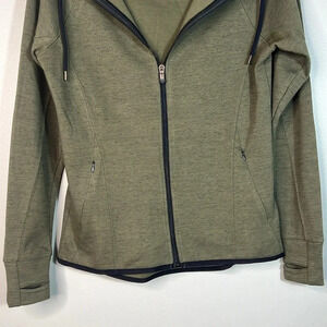 Keywords: TEK GEAR jacket, green fitted jacket, zipper jacket, thumb holes jacket, XS jacket, GUC jacket, cotton polyester jacket, active wear jacket, casual outerwear.