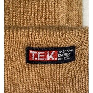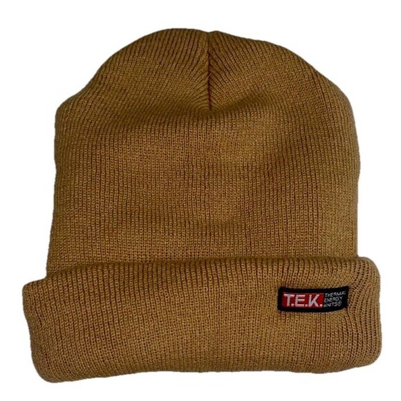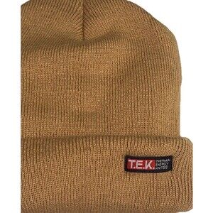 TEK Thermal Energy Knits Beanie Hat Tan Brown One Size Lightweight Stretch Knit