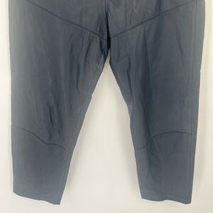 Leather jogger style trouser pants with exposed seamed details with pockets. Midnight navy.