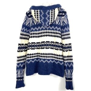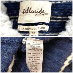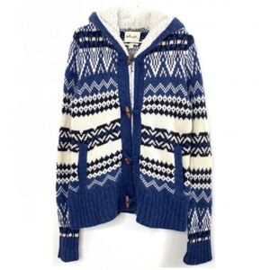 TELLURIDE Clothing Lambswool Fair Isle Stripe Fleece Hood Knit Jacket Blue Sz M