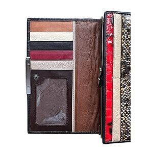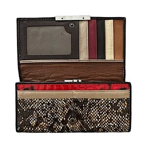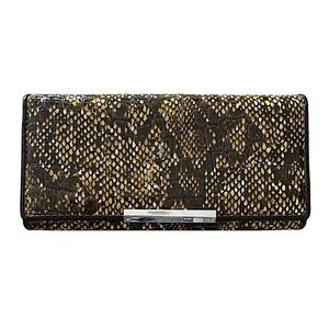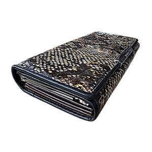 TEMANLI Patent Leather Bifold Wallet Brown Logo Snake Print