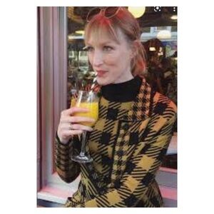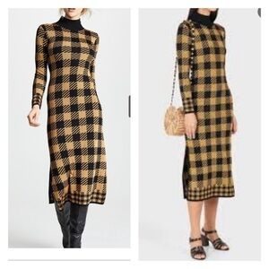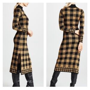 TEMPERLEY LONDON Trophy Knit Bodycon Midi Dress Mock Neck Marigold Black Check Temperly London Kate Middleton Meghan Markle