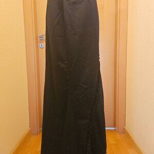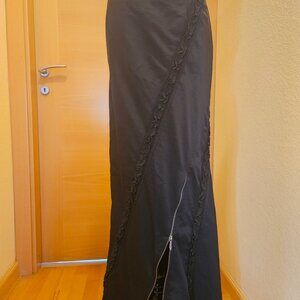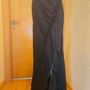 TEMPO PARIS BLACK MAXI SKIRT WITH RUFFLES AND FRONT ZIP SLIT, SIZE M