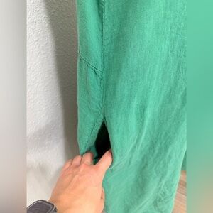 TEMPO PARIS Green Embroidery Linen Shirtdress size S-M
