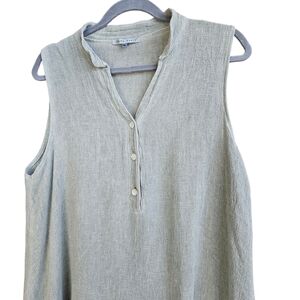 TEMPO PARIS Linen & Cotton Ruffled Faded Olive Sleeveless Midi Dress Size M