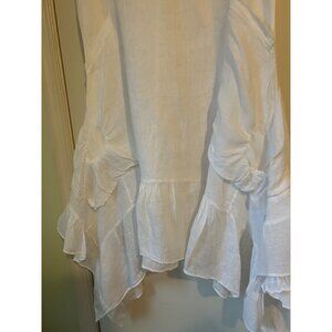 TEMPO PARIS Off White 100% Linen Artsy Dress Rauched Skirt Asymetrical Hem SZ M