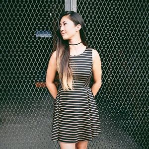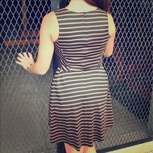 Conservative and classy Bar III striped dress in Size S. Thick material with a back zipper. Comfortable. IMPORTANT NOTE: There are a few small snags on the front of the dress.