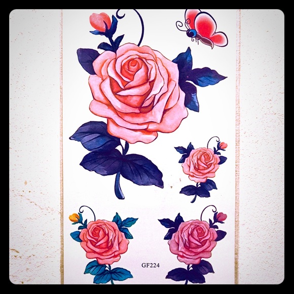 TEMPORARY PINK ROSES & BUTTERFLY TATTOOS 🦋
