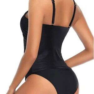 TEMPT ME Black High Neck Ruched Sides Tankini & Mid Rise Swim Bottom SIZE X-SMALL NWT