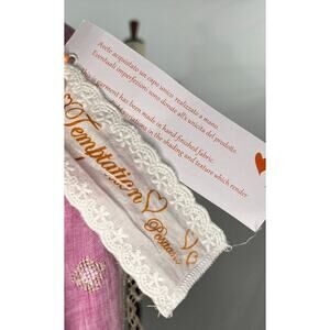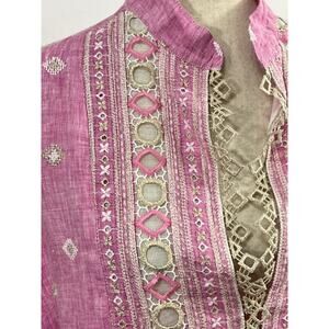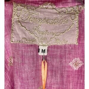 Women's dress by TEMPTATION POSITANO. Size M Medium. Rea dress. Orchid color, a purpley pink with white and gold embroidery. 100% linen. NWT new with tags, retails for 458.00. 3/4 sleeve.