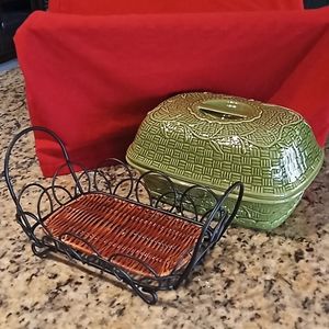 TEMP-TATIONS Presentable Ovenware Covered Green Casserole Dish.