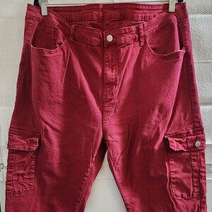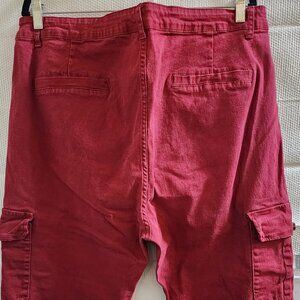 TEMU BURGUNDY CARGO STRETCH JEANS