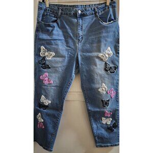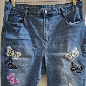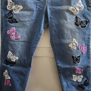 TEMU MEDIUM STONEWASH COLORFUL-BUTTERFLY-EMBROIDERED SKINNY STRETCH JEANS