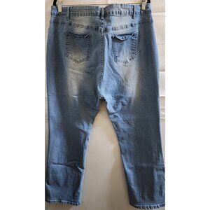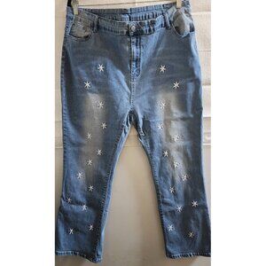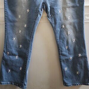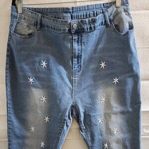 TEMU MEDIUM STONEWASH FLORAL/STAR-EMBROIDERED SKINNY STRETCH JEANS