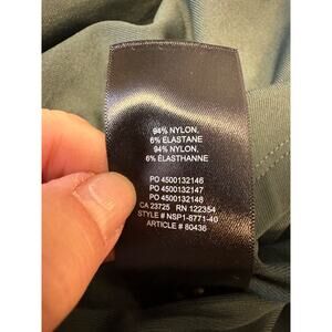 Elevate your wardrobe with the sophisticated charm of the TEN BY BABATON Dark Green Stretch Nylon Dress. Designed with a flattering V-neck and long classic sleeves, this knee-length bodycon dress offers a seamless blend of comfort and style. The solid dark green hue makes it a versatile choice for a variety of occasions, while the wrap accent adds a touch of elegance. Crafted from premium stretch nylon, this dress accommodates movement effortlessly, ensuring a snug yet comfortable fit. Perfect for party or cocktail events, this non-vintage, knit fabric dress is an essential for the fashion-forward woman. It's a regular size M, tailored to fit seamlessly into the fall, spring, and winter seasons.