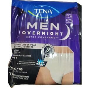 TENA Men's Overnight Incontinence Underwear Breathable L/XL (44" - 64") 12CT.