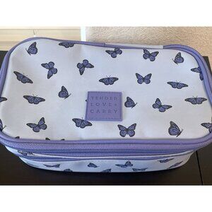 TENDER LOVE & + CARRY Travel Toiletry Makeup Cosmetic Bag Purple butterflies zip